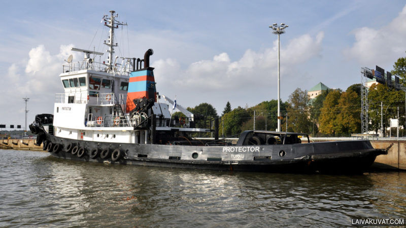 PROTECTOR, viimeisin AIS-tieto: 05.10.2023 14:18:54, koordinaateissa (59.4971, 24.9418), suuntana NaN° ja nopeutena 0 kn, määränpäänä "MUUGA", TILA: "ankkurissa".